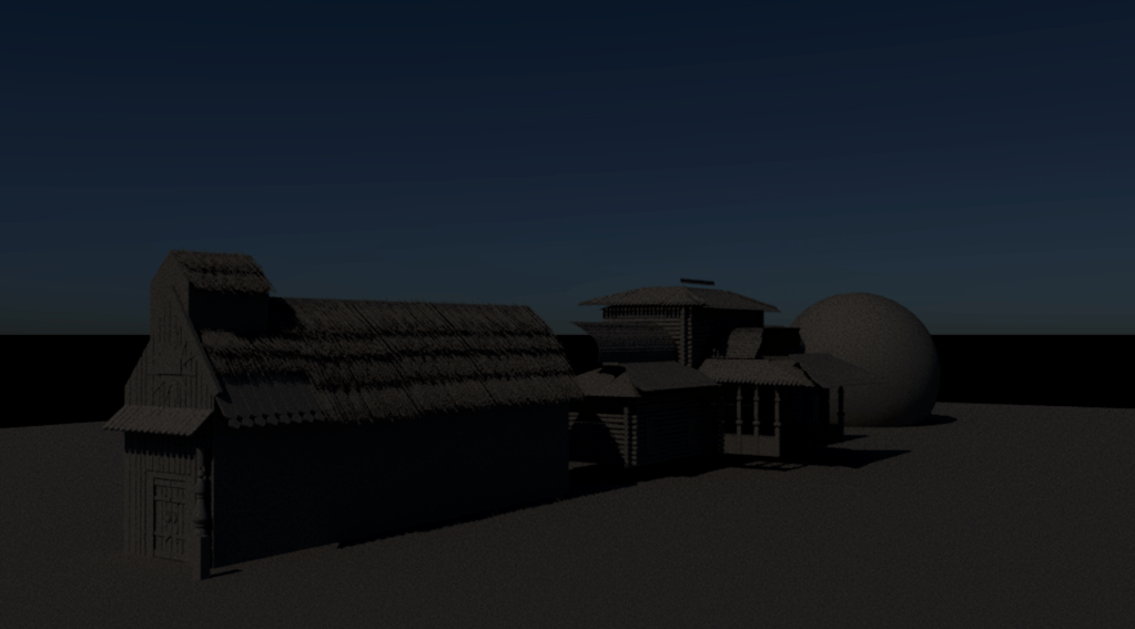 Eventually, I started to add cameras to move through the space. The lighting was not finalized yet as I was not sure how best to represent that at the moment. With this first test animation, I realized I did not like the perspective or starting from the bottom and wanted more focus on the cross as this structure was the only Christian structure.