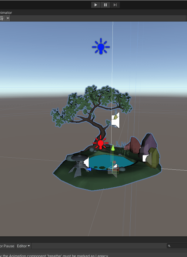 Shivam Patel handled working with the project in Unity, where he created the pages for the application, integrated the models, and created the different buttons to activate sound and lights. One thing we both worked on was the animation for the breathing and how to handle lighting. The first animation that Patel was able to implement in Unity was just a slow guided breathing; however, after a suggestion in class, we went with box breathing for more control. Since we wanted the application to also integrate with the surroundings, instead of just a single lighting, we went with a day and night setting seen in the second image below.